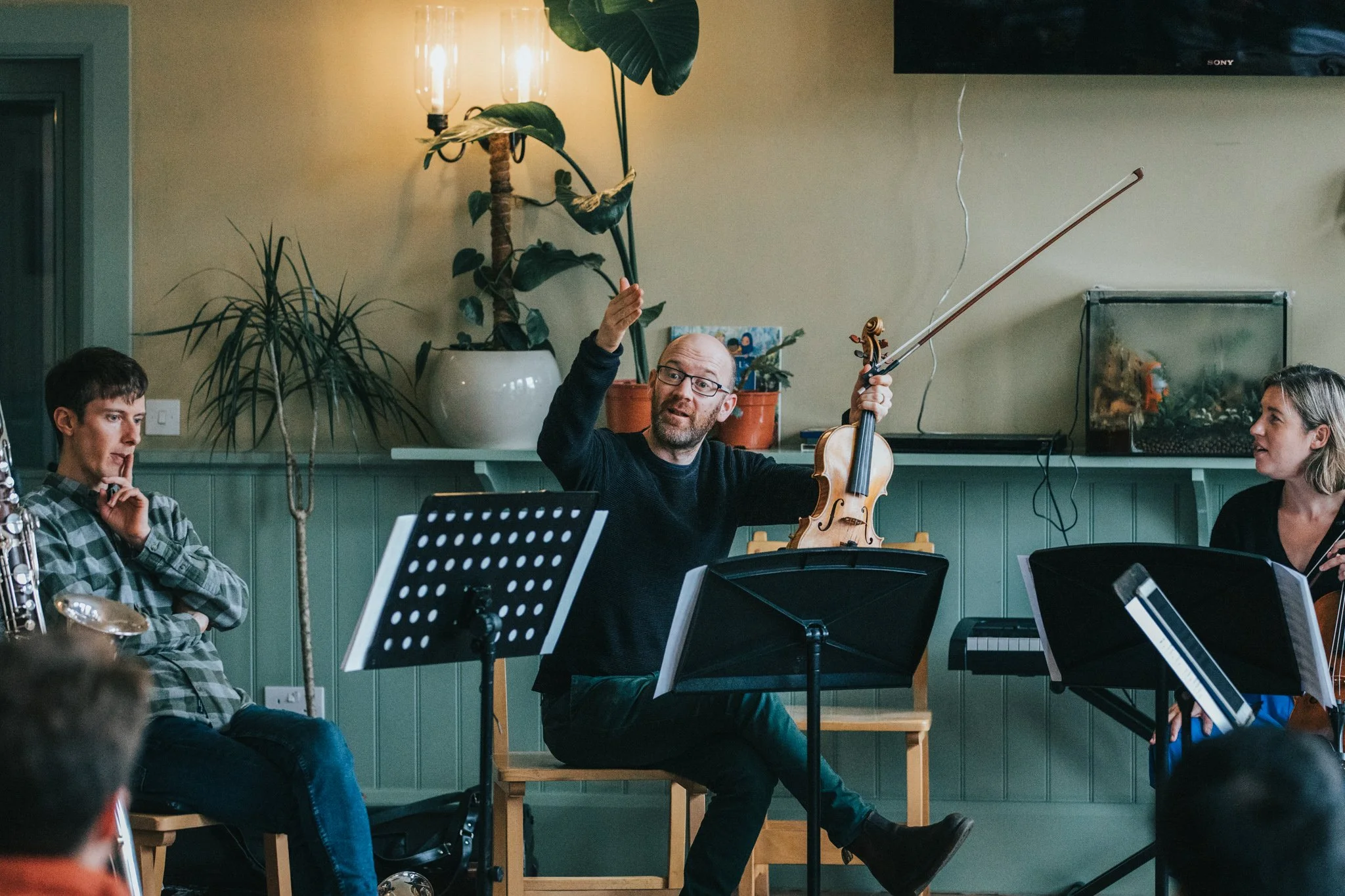 All participants will be asked to bring a partly completed work for the octet [clarinet, bassoon, horn, 2 violins, viola, cello, double bass]. During the course, you will finish writing this work under the guidance of James and Brett and it will be a maximum of 5 minutes duration when completed.